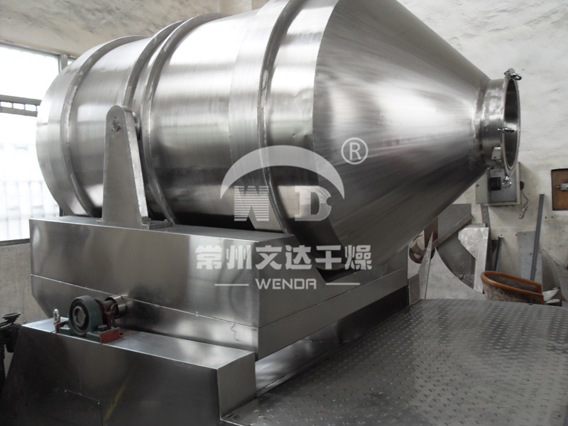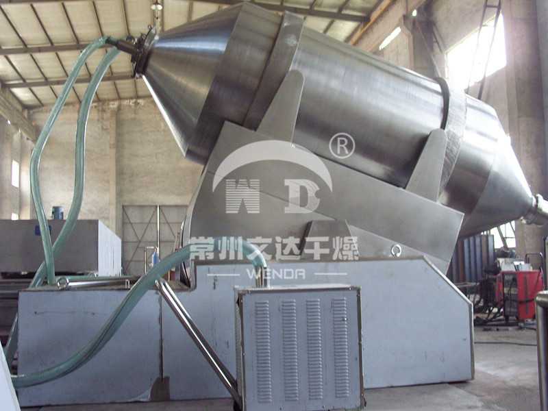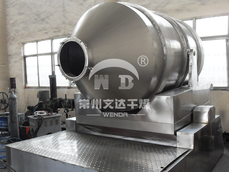 EYH二維混料機的轉筒可同時進行二個運動,一個為轉筒的轉動,另一個為轉筒隨擺動架的擺動。被混合物料在轉筒內隨轉筒轉動、翻轉、混合的同時,又隨轉筒的擺動而發生左右來回的摻混運動,在這兩個運動的共同作用下,物料在短時間內得到充分的混合。EYH二維混料機適合所有粉、粒狀物料的混合。