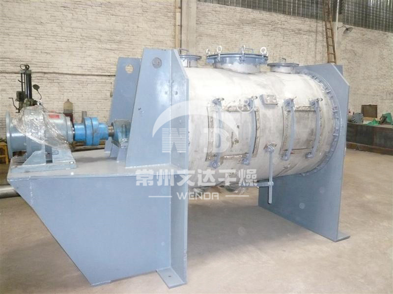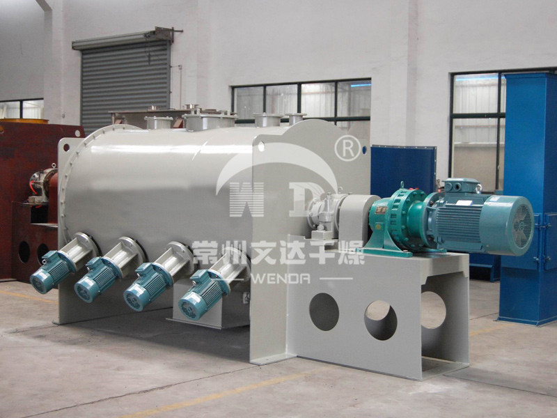該(gai)機型由傳動機構、臥(wo)式筒(tong)體、犁刀(dao)、飛(fei)刀(dao)四部分組(zu)成,物料(liao)在(zai)犁刀(dao)作用下沿筒(tong)壁作軸向(xiang)流(liu)支,當物料(liao)流(liu)經飛(fei)刀(dao)時被高速度(du)旋轉的飛(fei)刀(dao)拋灑,從(cong)而在(zai)較短(duan)時間內達到均(jun)勻混合。