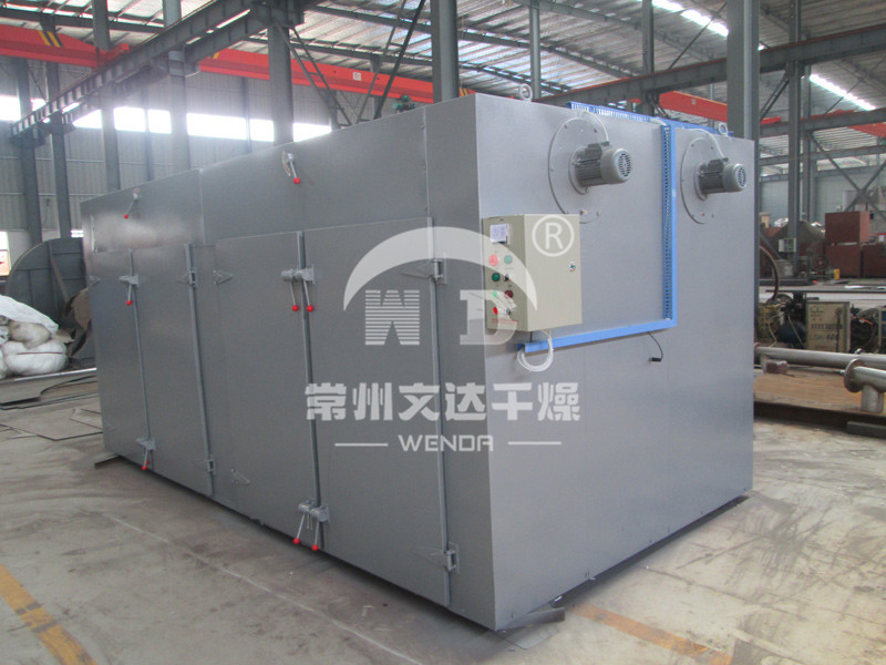大部分熱風在箱內循環,熱效率高,節約能源。利用強制通風作用,箱內設有可調式分風板,物料干燥均勻,熱源可采用蒸汽、熱水、電、遠紅外,選擇廣泛。整機噪音小,運轉平衡。溫度自控,安裝維修方便。適用范圍廣,可干燥各種物料,是通用干燥設備。