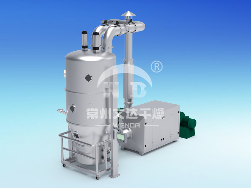 空氣經加熱凈化后,由引風機從下部導入,穿過料斗的孔網板。在工作室內,經攪拌和負壓作用形成流態化,水份快速蒸發后隨著排氣帶走,物料快速干燥。