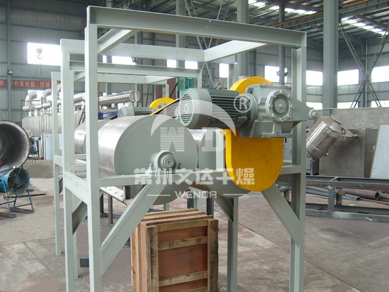 滾筒干燥機是一種內加熱傳導型轉動連續干燥設備。旋轉的滾筒通過其下部料槽,粘附著一厚度的料膜,熱量通過管道輸送至滾筒內壁,傳導到滾筒外壁,再傳導給料膜,使料膜中的濕得到蒸發、脫濕,使含濕分的物料得到干燥。干燥好的物料被裝置在滾筒表面的刮刀鏟離滾筒,到置于刮刀下方的螺旋輸送器,通過螺旋輸送器將干物料集中、包裝。