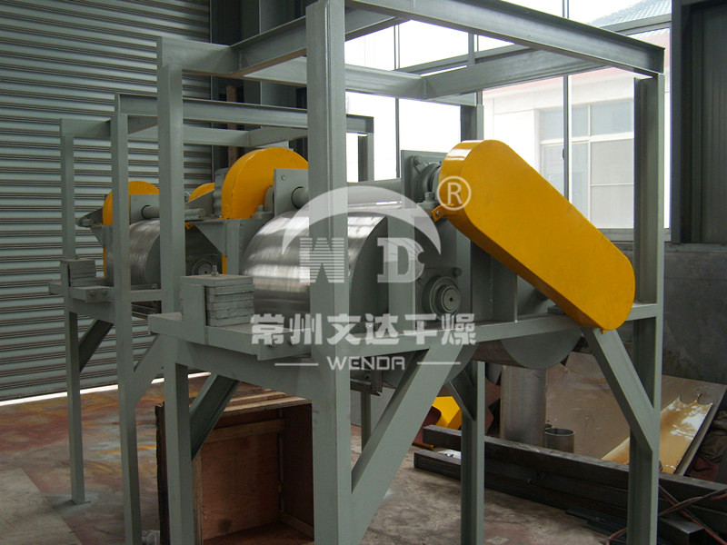 操作彈性大,適用性廣。可調整滾筒干燥機的諸多干燥因素。如進料的濃度、涂料料膜的厚度、加熱介質的溫度、滾筒的轉動速度等,都可以改變滾筒干燥機的干燥效率,且諸多因素互無牽連。這給滾筒干燥操作帶來很大的方便,使之能適應多種物料的干燥和不同產量的要求。