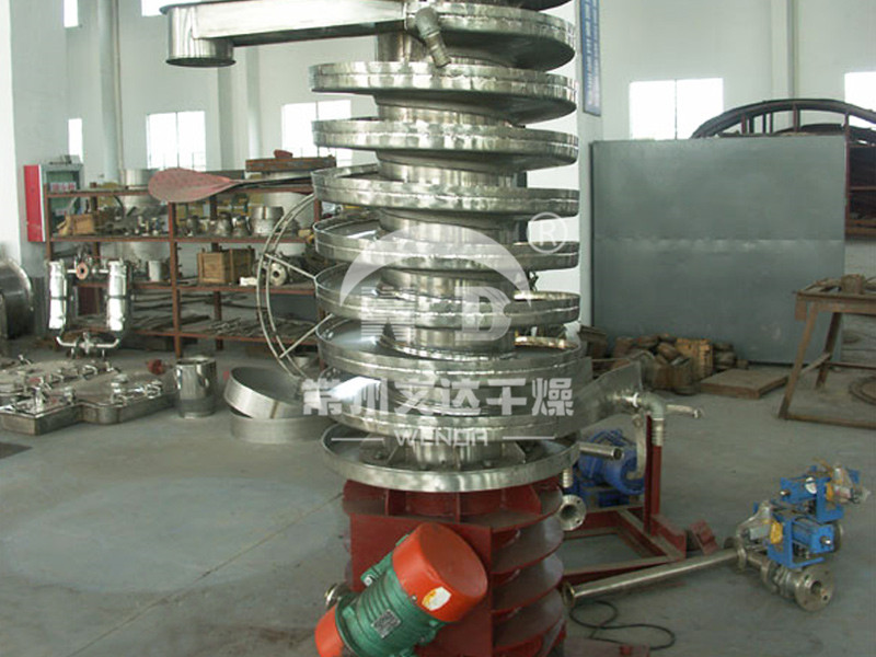 ●物料沿螺旋床自下而上作圓周運動的同時,自身也產生跳躍,從而增加了物料與熱風的接觸,增強了干燥效果。