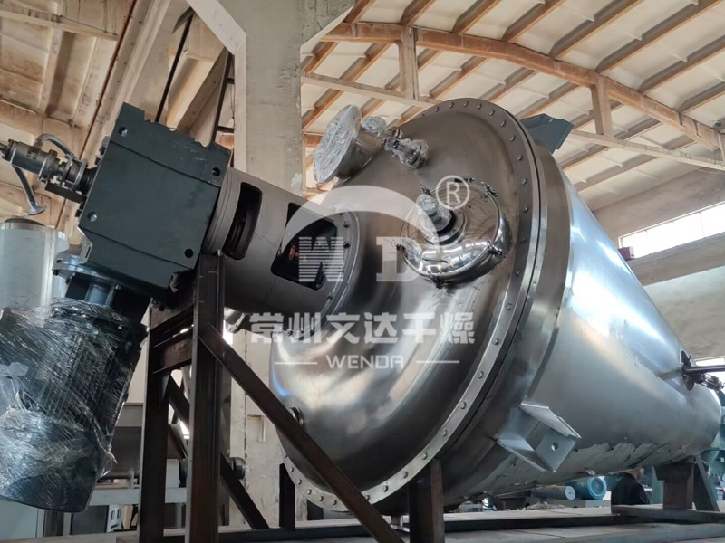 ●干燥(zao)階段:濾餅脫水后,通過(guo)回轉(zhuan)使濾餅疏松(song),同(tong)時,夾套內(nei)蒸(zheng)(zheng)汽對內(nei)壁進行加(jia)(jia)(jia)熱(re)(re),通過(guo)熱(re)(re)傳導(dao)對濾餅進行加(jia)(jia)(jia)熱(re)(re)升溫,濕份迅速蒸(zheng)(zheng)發達到干燥(zao)的效果(guo)。通過(guo)設備內(nei)抽真空的方法加(jia)(jia)(jia)快蒸(zheng)(zheng)發速度。通過(guo)加(jia)(jia)(jia)入處理(li)后的熱(re)(re)氮氣等介質帶走蒸(zheng)(zheng)發的濕份,可(ke)加(jia)(jia)(jia)速物(wu)料(liao)的干燥(zao),提高干燥(zao)效果(guo)。