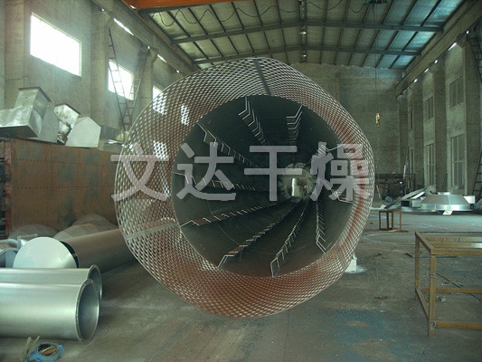 濕物料從干燥機一端投入后,在內筒均布的抄板器翻動下,物料在干燥器內均勻分布與分散,且與并流 ( 逆流 ) 的熱空氣充分接觸 ,加快了干燥傳流、傳質推動力。在干燥過程中,物料在帶有傾斜的抄板和熱氣流作用下,可調控地運動至干燥機另一端星形卸料閥排出成品。
